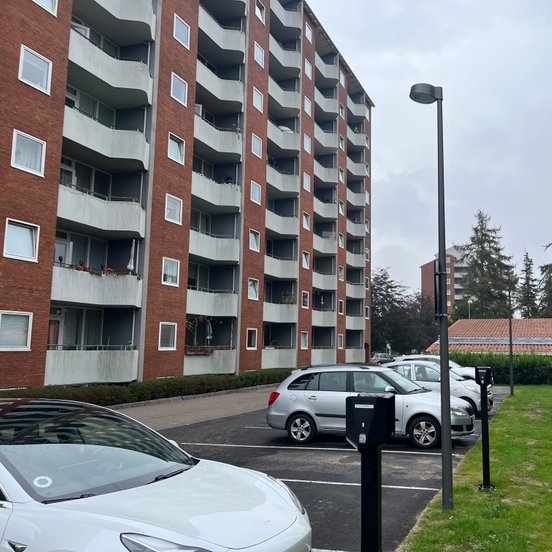 Stor boligforening i Hjortespring med over 500 boliger har opsat aktive og forberedte ladebokse på flere parkeringsområder. Ladeløsningen er for beboere.