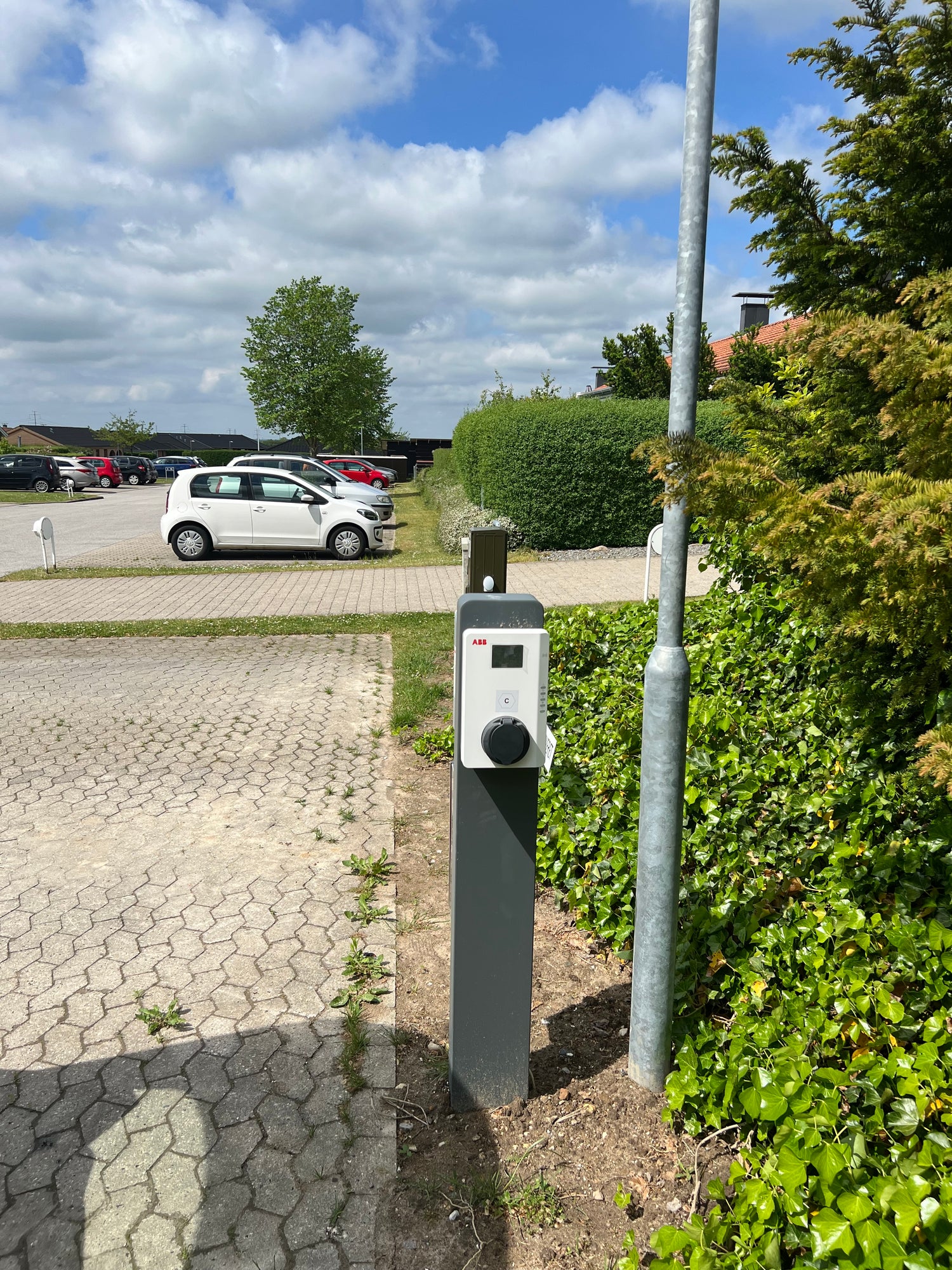 Stor boligforening har fået etableret 4 stk. ABB ladebokse til at starte med. 63A er trukket til de 4 ladebokse. Ladeboksene er placeret 2 og 2 med forskudt opstilling. Parkeringsselskab regulerer parkeringspladserne.